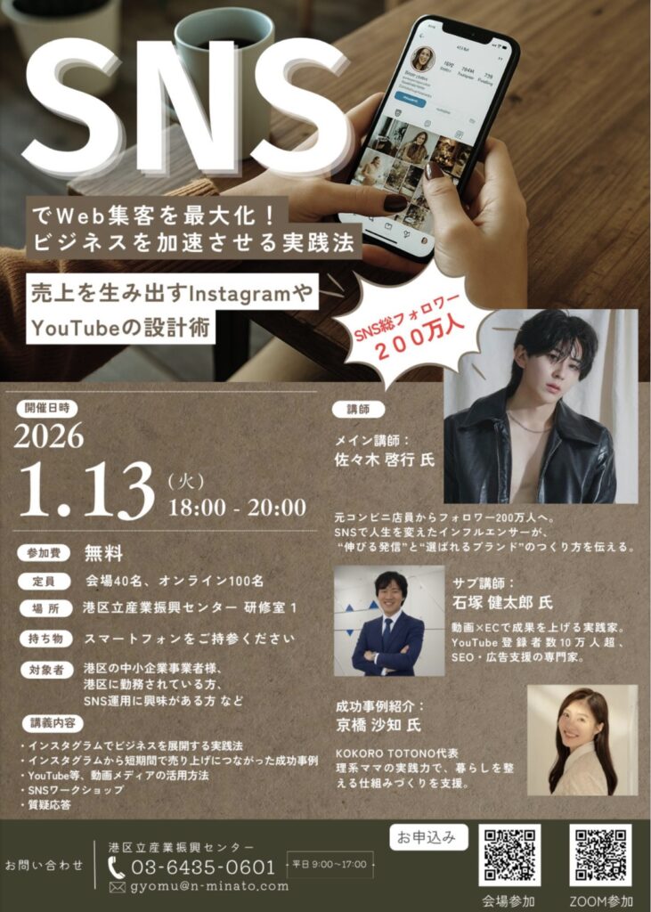 【参加無料】SNSでWeb集客を最大化!ビジネスを加速させる実践法 ~売上を生み出すInstagramやTouTubeの設計術~